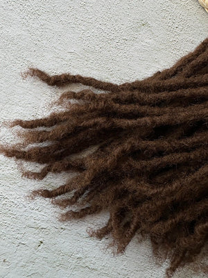 Experience effortless beauty with our Coil Tips Anwi Textured Human Hair Loc Extensions in radiant Medium Brown. Made from 100% premium human hair, these soft, hand-crafted locs offer a natural sheen, realistic texture, and long-lasting wear. Perfect for adding warmth, volume, and personality to your protective style.
